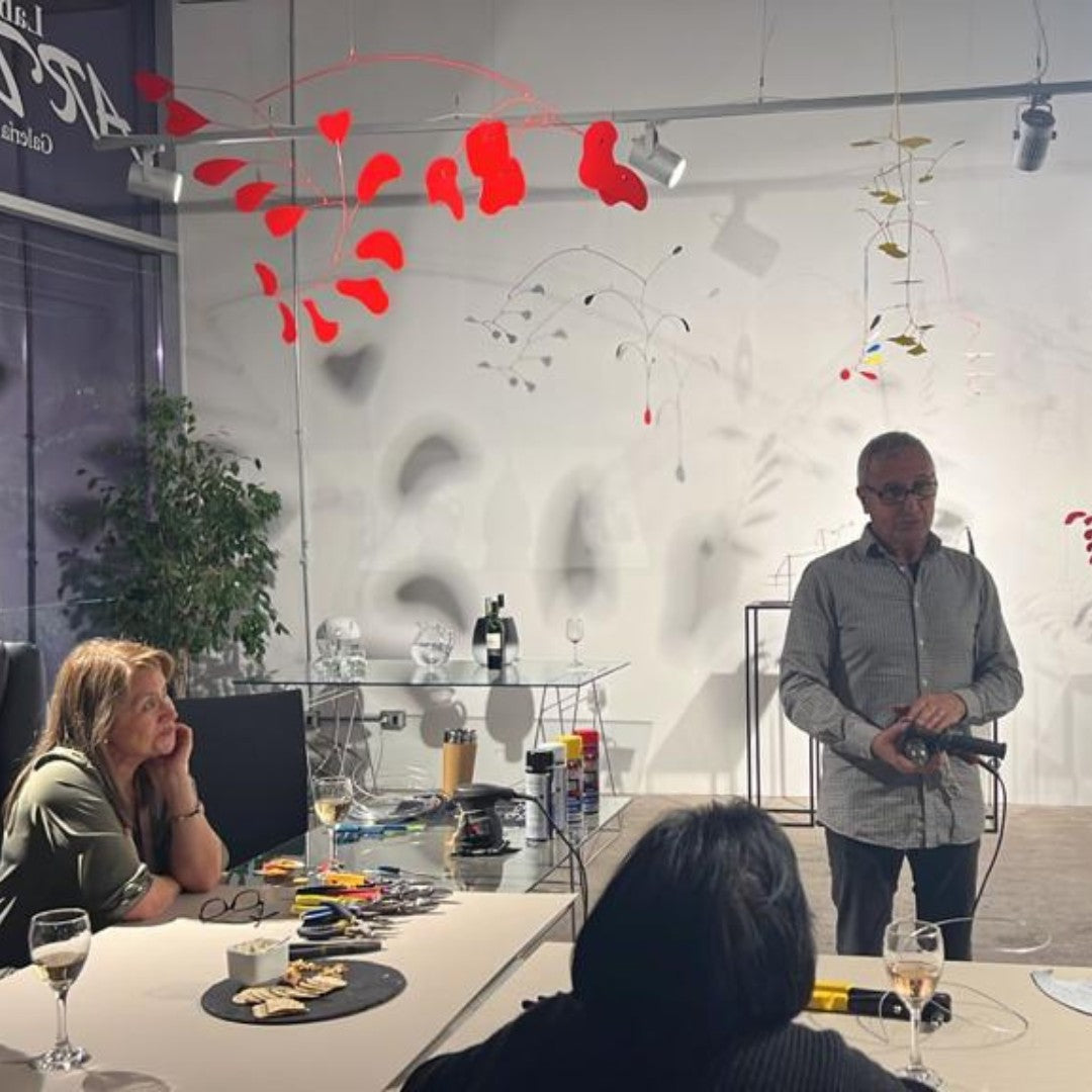 Mauricio Russo (1957, Chile) desde que vio por primera vez una exposición de Alexander Calder en el Museo de Bellas Artes, cuando tenía 13 años, quedó impresionado con sus esculturas en movimientos que con el aire hacían formas de incomparable belleza y equilibrio. A partir de esa edad comenzó a construir móviles inspirados en artistas como los que se muestran en esta colección. De profesión Ingeniero Civil Industrial, Máster en Investigación Operativa de la Universidad de Chile.