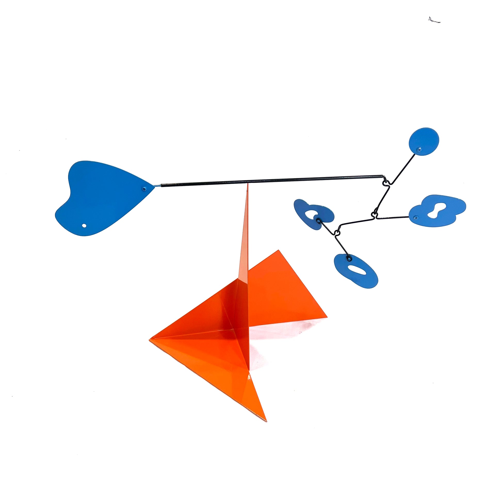 Su base anaranjada recuerda a una figura de papel en movimiento, mientras sus alas flotantes en tonos verdes juegan con el aire, como si intentaran despegar en un vuelo sereno.